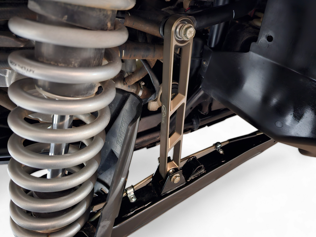 Our RZR Pro XP Rear Sway Bar Links are an essential upgrade designed to replace the vulnerable factory links that are prone to breaking in extreme off-road driving. CNC cut from 6061 aluminum, they feature high strength uni-balls with misalignment spacers for improved angles. Hard anodized gunmetal, the install easily to the factory position.