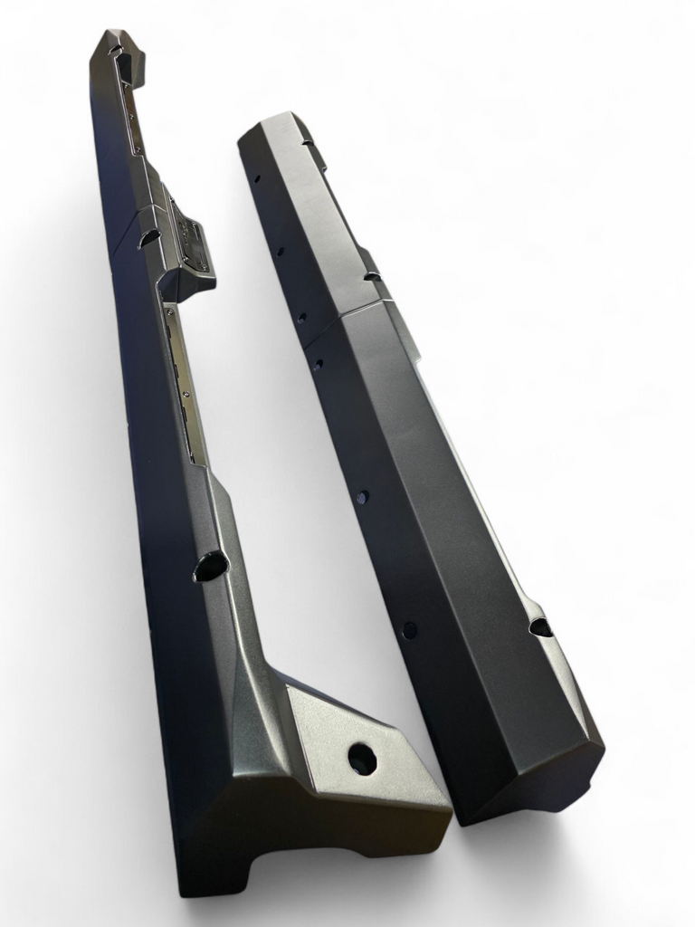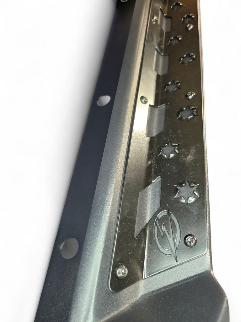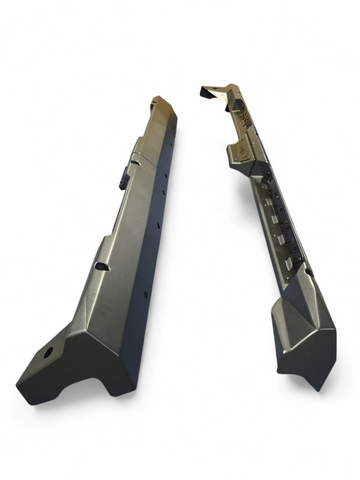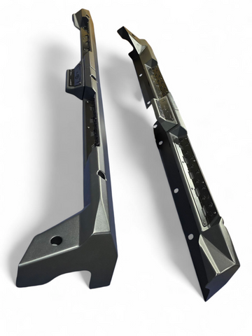 The Elektric Offroad Designs Volt Series 2024+ Polaris Xpedition Rock Steps provides added protection to your side by side. Our sliders give added protection to the Xpedition's body when squeezing through tight places on your run. Our built-in step function with grip plating allows for traction. These steel sliders are finished in a hammer black powder coat and the aluminum accent plates are finished in a satin black powder coat. Installation features a simple bolt-on process.