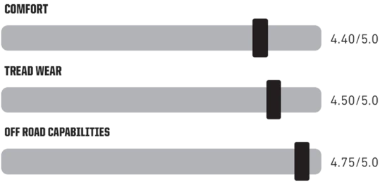 - Huge blocks on tread pattern heighten the grip effect while off road.