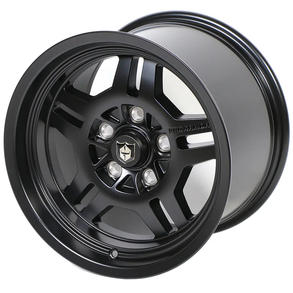 Pro Armor Rally UTV Deep Offset Wheel in matte black. This wheel in 15x10 size. Easily washable and looks great when paired with one of our Pro Armor tires. 5-lug pattern.