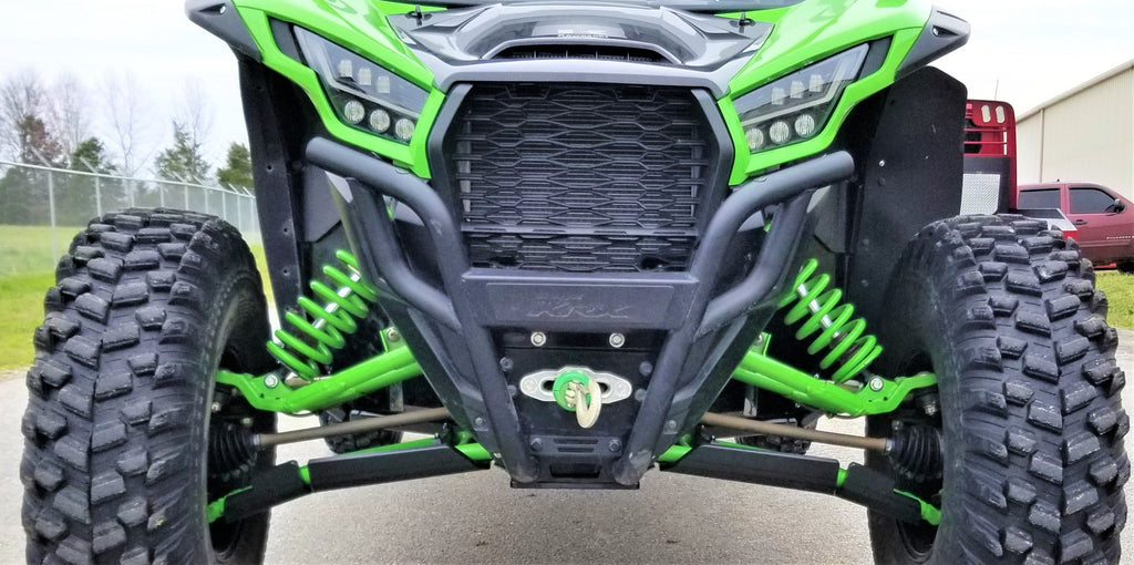 Break bad on the trail, ride the most buggy-busting terrain you can find - Trail Armor's a-arm guards can take the iMPACT! Made of the same 1/2" supertough polymer we make our skid plates out of, these are by far the toughest, best designed and coolest a-arms on the market. Guards have three sided protection of your front CV boots - front, rear and bottom - and mount easily with no drilling required. All mounting hardware and simple photo-documented installation instructions are included. Fits the 2020 - 2025 Kawasaki KRX 1000, KRX 4 1000 all editions - front guards set of 2 only. Trailing Arm Guards sold separately. Note: Because of limited space, these front guards are not engraved with Trail Armor on the front. This picture is for illustration purposes only of the tri-color effect. COLORS ARE CONSIDERED A SPECIAL ORDER AND ARE NON-RETURNABLE. THEY ARE NOT PIGMENT MATCHED TO ANY OEM MANUFACTURER'S COLOR SCHEME. PLEASE CONTACT US FOR ANY QUESTIONS ON MATCHING OR BLENDING WITH YOUR VEHICLE'S PLASTIC AND/OR GRAPHICS. See ALSO FITS CHART in gallery for specific year models.