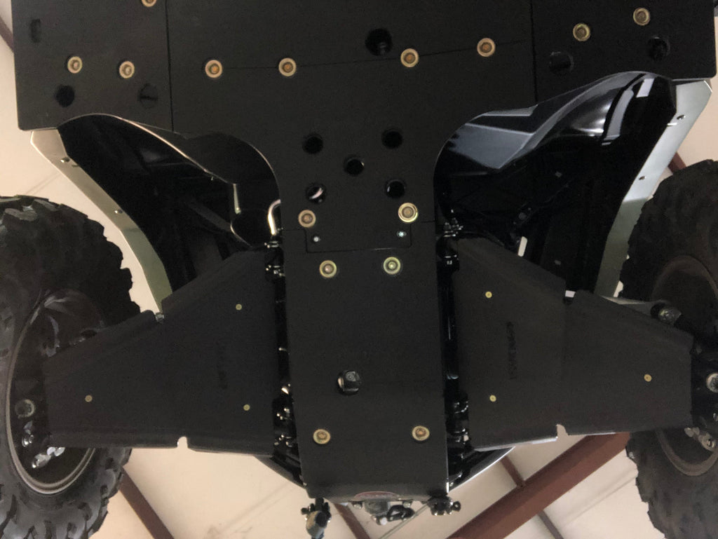 Break bad on the trail, ride the most buggy-busting terrain you can find - Trail Amor's a-arm guards can take the iMPACT! Made of the same 1 /2" Super Tough Polymer we make our skid plates out of, these are by far the toughest, best designed and coolest a-arms on the market. Guards have three sided protection of your front and rear CV boots - front, rear and bottom - and mount easily with no drilling required. All mounting hardware and simple photo-documented installation instructions are included. See Also Fits Chart in gallery for specific year and model fitment. COLORS ARE CONSIDERED A SPECIAL ORDER AND ARE NON-RETURNABLE. THEY ARE NOT PIGMENT MATCHED TO ANY OEM MANUFACTURER'S COLOR SCHEME. PLEASE CONTACT US FOR ANY QUESTIONS ON MATCHING OR BLENDING WITH YOUR VEHICLE'S PLASTIC AND/OR GRAPHICS. THERE IS NO ENGRAVING ON THE FRONTS OF THE A-ARM GUARDS IN TRICOLOR. PICTURE SHOWS HOW SIDES WOULD LOOK.