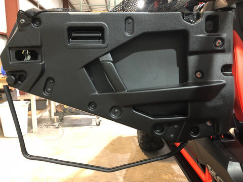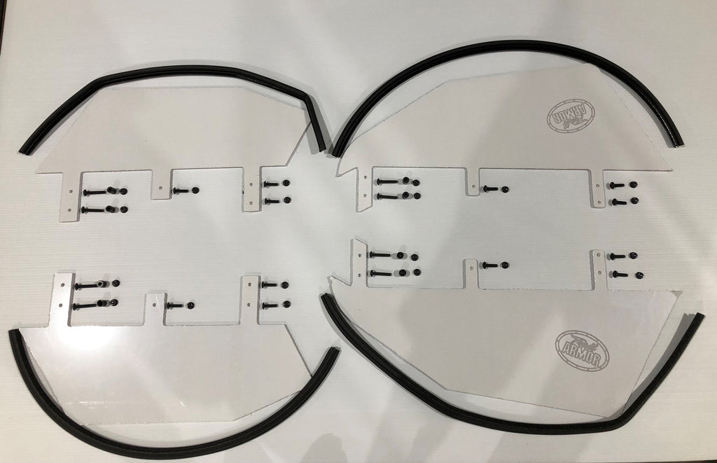 Trail Amor's Door Inserts for the 2020 - 2022 Honda Talon 1000X-4 and Talon 1000X-4 Fox Live Valve Edition are made from either a 1/4" polycarbonate with mar-resistant coating on both the interior and exterior OR 1/4" solid black plastic. The polycarbonate option allows a clear view to watch your wheel placement while rock crawling while keeping mud and debris from entering the cab! If you need to close this gap but don't need a visual reference for technical rock crawling, the black option is a cost effective way to achieve this. Includes mounting hardware and detailed photo-documented instructions. Please see ALSO FITS chart in gallery for specific year and model fitment.