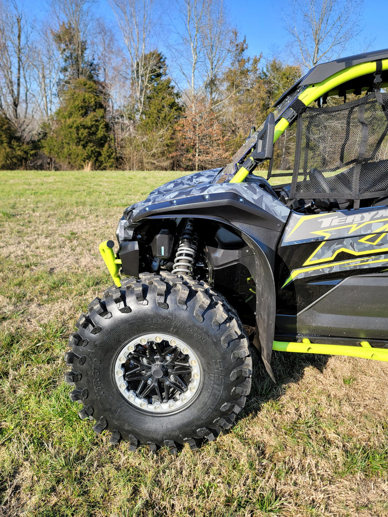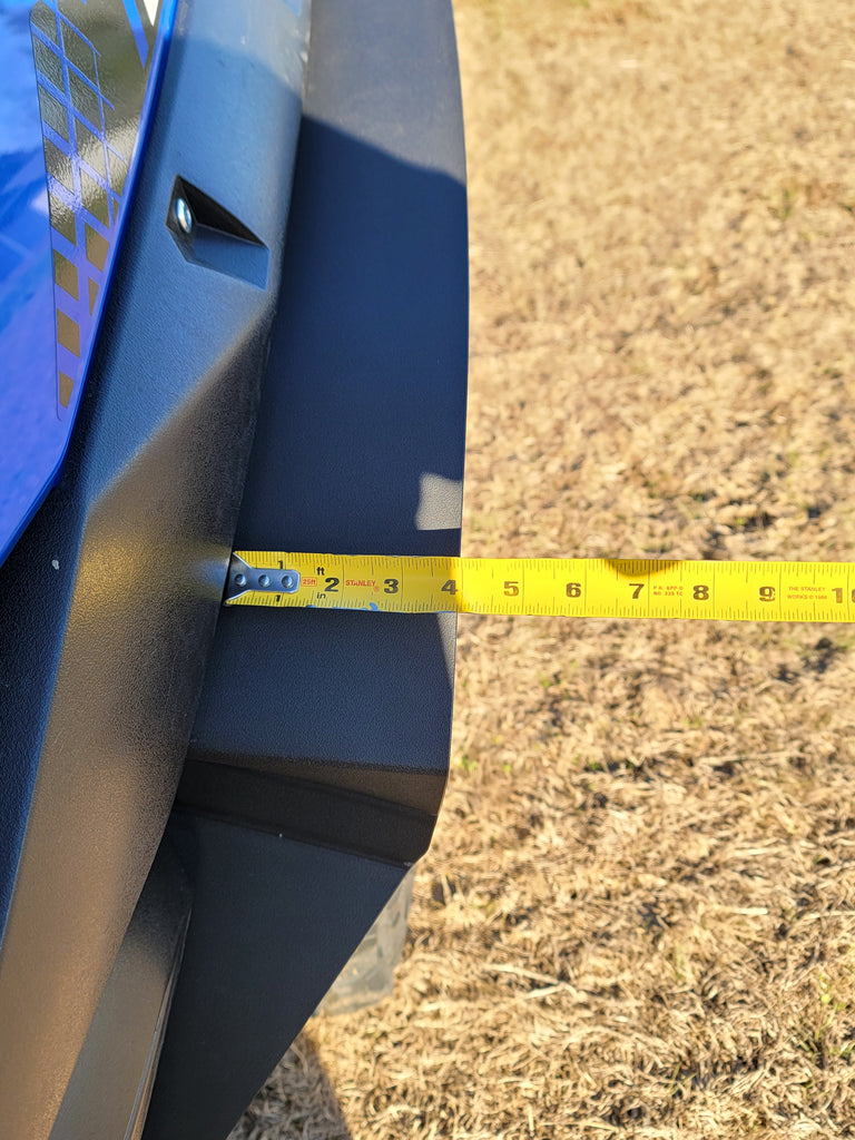 Made of HDPE plastic (textured on face side) custom cut to work with the front and rear Kawasaki KRX 1000 fenders. Will extend the width of the vehicle 4 inches each side.