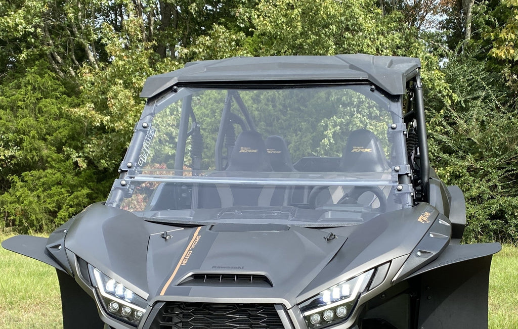 Trail Armor’s revolutionary CoolFlo Windshield family continues to grow with the addition of this windshield for the KRX 1000 and KRX 4 1000. Made of 1/4" mar-resistant coated (on the interior and exterior) polycarbonate, Trail Armor’s CoolFlo Windshield provides excellent face and eye protection while relieving back draft dust and heat for a comfortable ride. They are easy to install using Trail Armor's Fast Clamps, and the lower section can be removed and replaced as needed. Trailers great with both panels in place. WILL NOT FIT ANY EXTRUDED CAGE. SEE "ALSO FITS" CHART FOR SPECIFIC YEAR AND MODEL FITMENT.