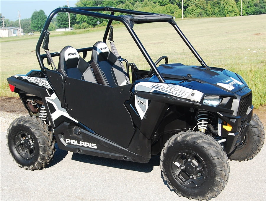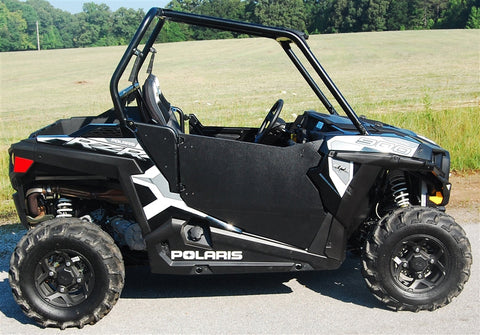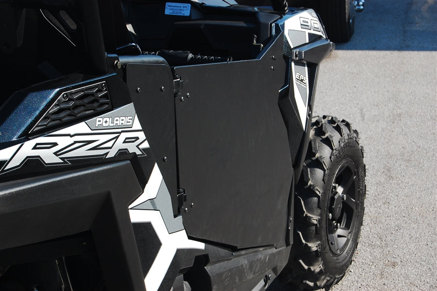 Trail Armor is proud to introduce our new Trail Armor Polaris 2015 - 2019 Polaris RZR 900, RZR 900 EPS TRAIL, RZR S 900, RZR S 900 EPS, 2015 - 2017 RZR 900 XC and 2016 - 2020 RZR S 1000 EZON Slimline Doors. Made of a 5/8 solid high density plastic and requires NO DRILLING of your roll cage. Doors easily mount to OEM hinges for quick installs. The supplied filler panels enclose the rear opening for a factory-like fit and finish. New supplied strike plates mount on existing factory holes, with a state of the art two paw, two position rotary latch for a rattle free fit. All the brackets and hardware have durable powder coat and weather resistant black zinc finishes for a lasting, clean look. Unlike sheet metal door panels, our door panels will not rust, ding, or bend. Trail Armor doors open suicide for easy full extension entry/egress. The tight-fitting, slim-line profile allows for navigation in tight spots with nothing to hang on. Installs easily with photo-documented installation instructions. Lightweight and durable, these shields have the factory-like fit and finish that Trail Armor is known for. Graphics kits sold separately. This product is designed and engineered to fit on stock cages, not guaranteed to work on aftermarket cages without modification.