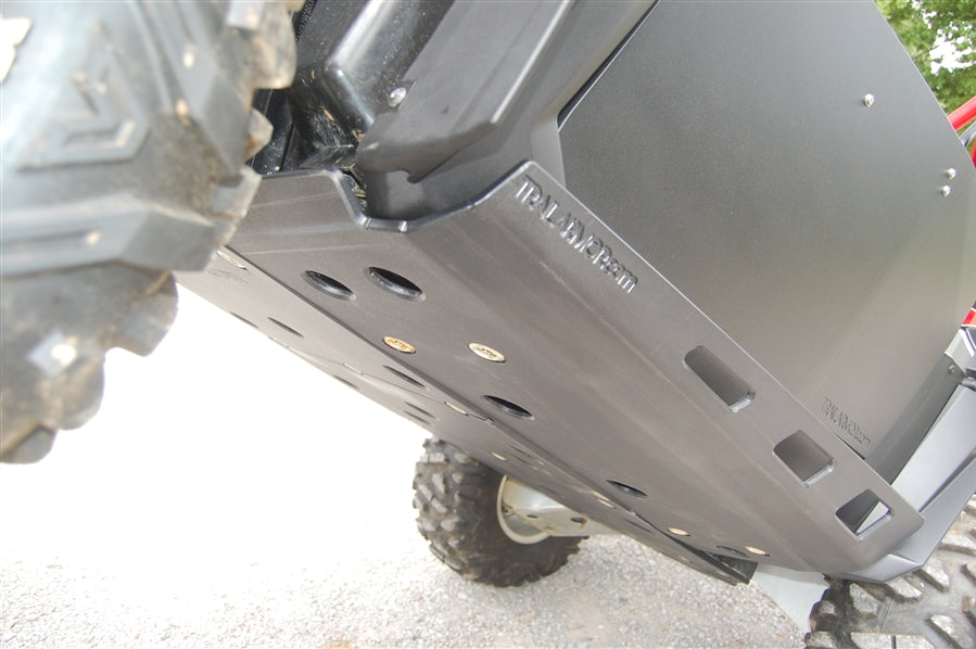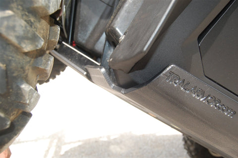Trail Armor's nerf sliders for the Polaris RZR 800, RZR 570, RZR 800 S, RZR 800 XC and RZR S 570 are made of 1/2" super tough polymer. Because they are made of plastic, they are lighter than typical metal skids, and absorb the shock of impact - no dents and rust. This two piece set bolts up tight to the vehicle's bottom and does not hang down to get caught on obstacles. It protects from wheel well to wheel well, rolling up the sides to safeguard the plastic rocker panels. Strategically placed drain holes allow dirt and debris to wash out for drainage and easy cleaning. Mounts easily in factory pre-drilled holes. Nerfs can be installed with Trail Armor's center skids or with the OEM plastic skid (will have to cut off tank guard lip on OEM shield). Trail Armor's center skids sold separately. See product code TA012SKIDCENTER-RZR-S or TA012SKIDCENTER-RZR570. For those who want to maintain a 50" trail width on the standard RZR 800 or the RZRXC, please choose option below "Trimmed for 50" Max Trail Width or standard rocker panel protection please". STANDARD (untrimmed) rocker panels shown in pictures.Now available in color! SEE FITMENT SPECIFICS ON ALSO FIT CHART. COLORS ARE CONSIDERED A SPECIAL ORDER AND ARE NON-RETURNABLE. THEY ARE NOT PIGMENT MATCHED TO ANY OEM MANUFACTURER'S COLOR SCHEME. PLEASE CONTACT US FOR ANY QUESTIONS ON MATCHING OR BLENDING WITH YOUR VEHICLE'S PLASTIC AND/OR GRAPHICS.