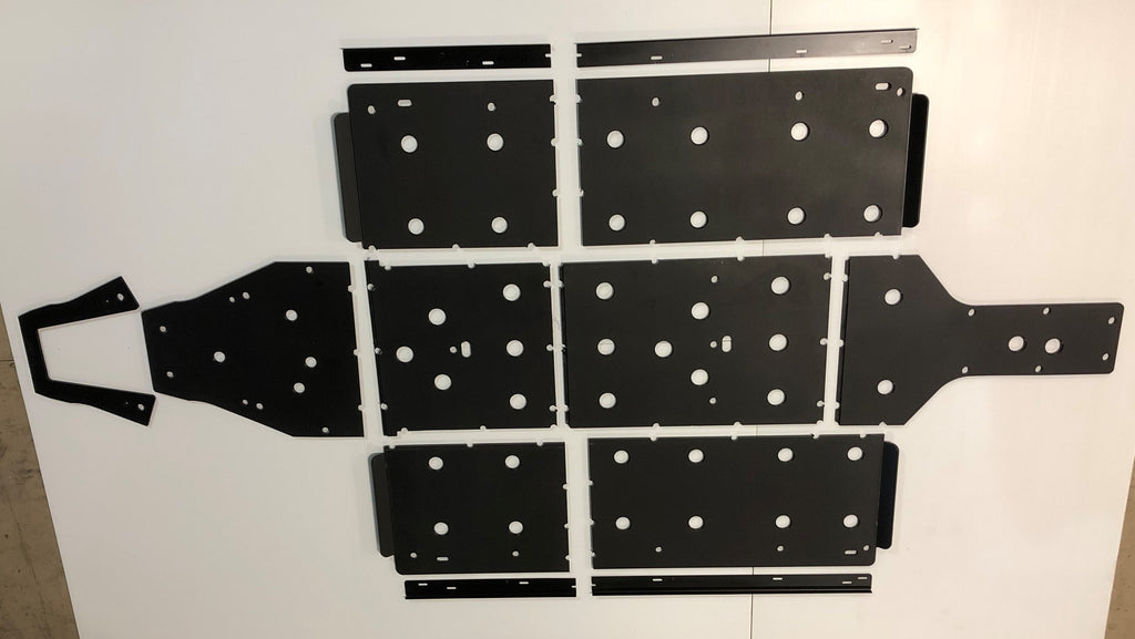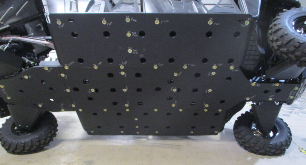 Get the best in under vehicle protection with Trail Armor's full skid plate set for the 2017 - 2025 Polaris Ranger 570 Full Size Economy Crew (with Struts). Made from 1/2" Super Tough polymer, these plastic skids absorbs shock to the bottom of the vehicle with no dents or rust and are lighter than traditional metal skids. Strategically placed drain holes allow dirt and debris to wash out - you don't have to remove them to clean out the belly your vehicle. They come in easy to install jointed sections that cover the full length and breadth of the vehicle, including the front and rear differential. Mounting hardware and instructions included. WILL NOT FIT ANY FULL SIZE RANGER XP 570 THAT DOES NOT HAVE FRONT STRUTS.