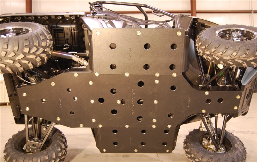 Get the best in under vehicle protection with Trail Armor's full skid plate set for the Polaris Ranger Midsize 570 and Midsize 5000. Made from a 1/2" high density uhmw polymer, these plastic skids absorb shock to the bottom of the vehicle with no dents or rust and are lighter than traditional metal skids. Strategically placed drain holes allow dirt and debris to wash out - you don't have to remove them to clean out the belly your vehicle. They come in easy to install jointed sections that cover the full length and breadth of the vehicle including the front and rear differential. Extended side panels serve as nerf sliders protecting the sides and rocker panels of your vehicle. Mounting hardware and instructions included. Fits Ranger Midsize 570 2014 - 2021, 2020 - 2021 Ranger Midsize 570 Premium and 2017 - 2022 Ranger Midsize 500 - must specify year model - year break between 2014 and 2015. Will not fit the 2022 Ranger 570 SP. Please see ALSO FITS chart in the gallery for specific year and model fitment.