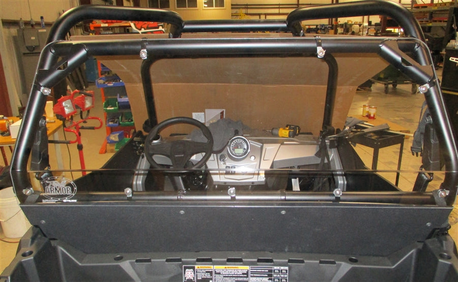 Trail Armor’s Rear Window Dust Shield kit provides the most effective barrier for keeping cargo, dust and debris out of the cab of your Polaris 2008 - 2014 RZR 800 and RZR 800 S, 2012 - 2019 RZR 570, and 2017 RZR S 570. The upper rear windshield is made from ¼” thick (not 3/16” or 1/8”) clear polycarbonate, making it the strongest and most durable rear window on the market. Unlike some of the other rear windows on the market, Trail Armor’s Rear Window Dust Shield kit has a UV protective coating on the exterior of the window to inhibit yellowing. Additionally, instead of just fitting between the roll cage bars (leaving sizable gaps between the shield and the bars), Trail Armor’s Rear Window Dust Shield kit overlays the roll cage bars for a professional, tight fit as a cab back – essential when used as part of a full cab enclosure for those winter rides - and will not interfere with hard or soft tops. The bottom dust shield is made of ¼” black HMW haircell polyethylene and fits securely between the lower cage and the bed of your vehicle. It will not interfere with any bed function. Like all Trail Armor windshields, skids and debris shields, this Rear Window Dust Shield kit is cut with a CNC 5-axis router to ensure a smooth-edged, accurately cut product every time. Trail Armor’s Rear Window Dust Shield Kit for the Polaris RZR 800, RZR S, RZR 570, and RZR S 570 is easy to install and comes with all mounting hardware and detailed, photo-documented instructions.