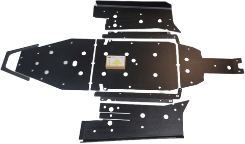 Protect your 2022 - 2024 Polaris Turbo R with Trail Armor’s full skid plate set, crafted from 1/2" super tough polymer. These skids offer excellent shock absorption, long-lasting surface durability without rust, and are lighter than metal counterparts. Drain holes are positioned to let debris wash away easily without removal. The kit includes multiple sections covering the underside, including front and rear differentials, with access points for servicing grease fittings and oil drains. Choose between Standard Sliders for extended rocker panel coverage or Trimmed Sliders, compatible with Pure Polaris Rock Sliders. Installation hardware and instructions are included. Some factory hardware may be reused. Shipping is via UPS ground with applicable large package fees. Color options are special order and non-returnable. These sliders do not feature any engraving—the included tri-color image illustrates the color contrast. Front A-arm Guards, Trailing Guards and Mud Flaps displayed here are available for purchase separately. Refer to Product #'s TA012ARMIMPFG-PROR, TA012IMPTAG-TURBOR, TAMFFE-PROXP for details. Consult the Fitment Guide for exact vehicle compatibility.