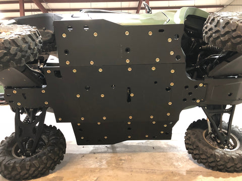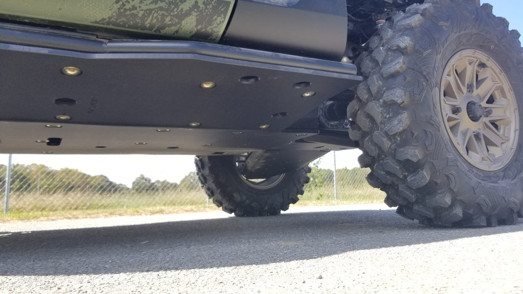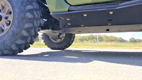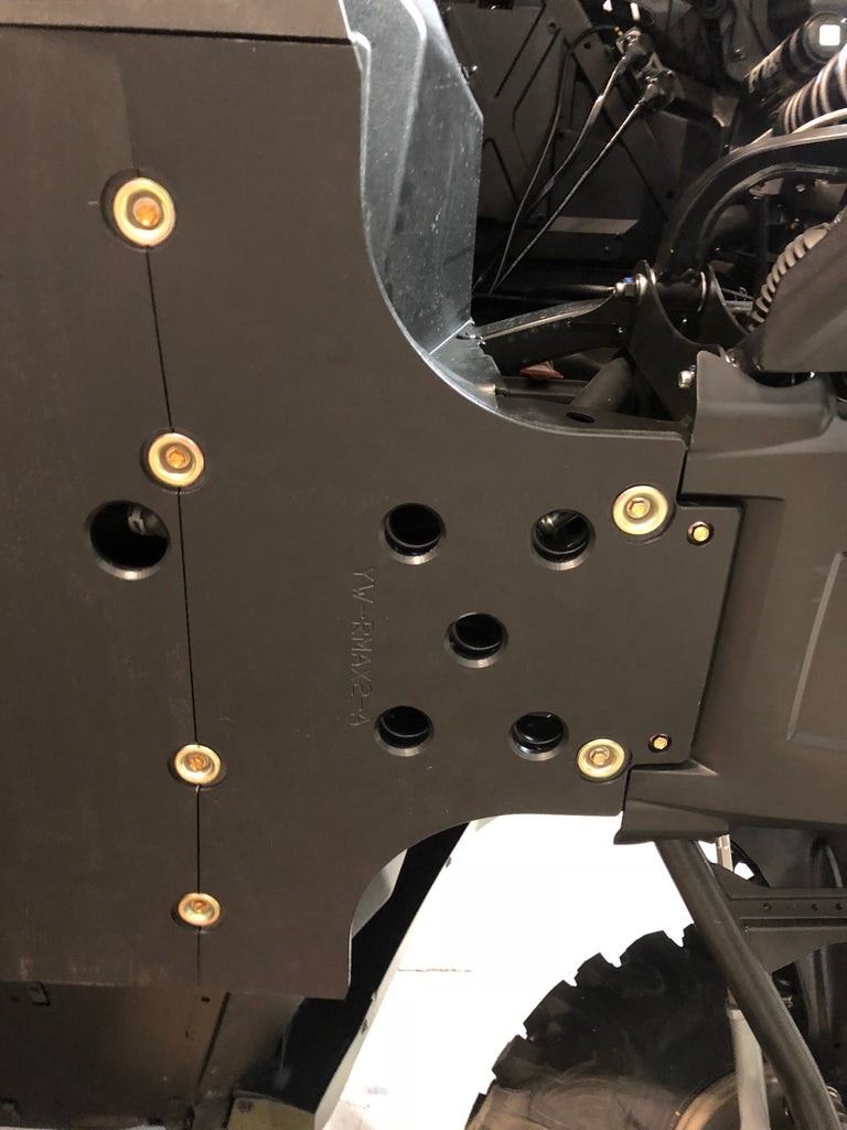 Get the best in under vehicle protection with Trail Armor's full skid plate set for the 2021 - 2025 Yamaha Wolverine RMAX2, RMAX2 1000 X-TR, RMAX2 1000 LT Edition, and RMAX21000 Sport. Made from our own custom blend of ultra high molecular weight polymer, these 1/2" plastic skids are lighter than most traditional metal/aluminum skid plates and because they have no "impact memory", they absorb shocks to the bottom of your vehicle without the dents, galling and corrosion of metal/aluminum skids. Trail Armor was the first in the industry to design skids with leading edges (front and rear) featured on our skid plates. These leading edges protect vulnerable frame edges and wheel wells from blunt edge impacts and act as a starting edge to slide over obstacles without the resistance and drag of metal skid plates. Additionally, these skids for the RMAX2 are designed side panels that extend approximately a 1/2" past the rocker panels to protect the vulnerable sides and rocker panels of your vehicle. Compare Trail Armor's skid set coverage with other skid manufacturer's like items - slider nerfs are either sold separately or the bottom skid coverage ends before the rocker panel, leaving this part of your vehicle unprotected. Trail Armor's skid plates come in easy to install panels that cover the full length and breadth of the vehicle, including the front and rear differential. They install directly over the existing metal factory skid plate. Access holes to service points and oil drains make maintenance a breeze. Strategically placed drain holes allow dirt and debris to wash out - you don't have to remove them to clean out the belly your vehicle. However, if needed, individual panels may be removed to access different areas without removing the entire skid plate. Recessed mounting holes protect fasteners from damaging blows and keeping all bolt heads from protruding the skid's surface. All kits come with corrosion resistant hardware and photo-documented installation instructions. Installation videos, if available, are provided as a YouTube video on our site. A-Arm guards if shown installed in pictures are not included and sold separately. Colors are not matched to any OEM graphic package. Colors are considered a special order and are non-returnable. Please see Also Fits Chart in gallery for specific year and model fitment.